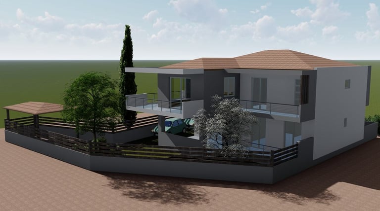 Το παρόν αφορά στην ανέγερση διώροφης οικοδομής κατοικιών σε οικόπεδο, το οποίο βρίσκεται εντός του οικισμού της Καλάνδρας Χαλκιδικής. Για την εξυπηρέτηση των στεγαστικών αναγκών της οικογένειας σε σε επαρχιακό / αγροτικό περιβάλλον. Αποφασίστηκε να αναπτυχθεί εντός του γηπέδου μια διώροφη οικοδομή η οποία περιλαμβάνει πέρα από την προβλεπόμενη κατοικία στον πρώτο όροφο θα διαθέτει και δύο ισόγειες κατοικίες για την μελλοντική αξιοποίηση τους για τις εισοδηματικές ανάγκες της οικογένειας.