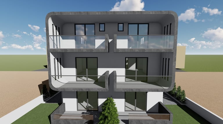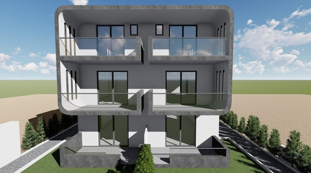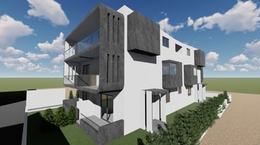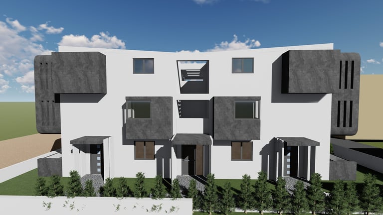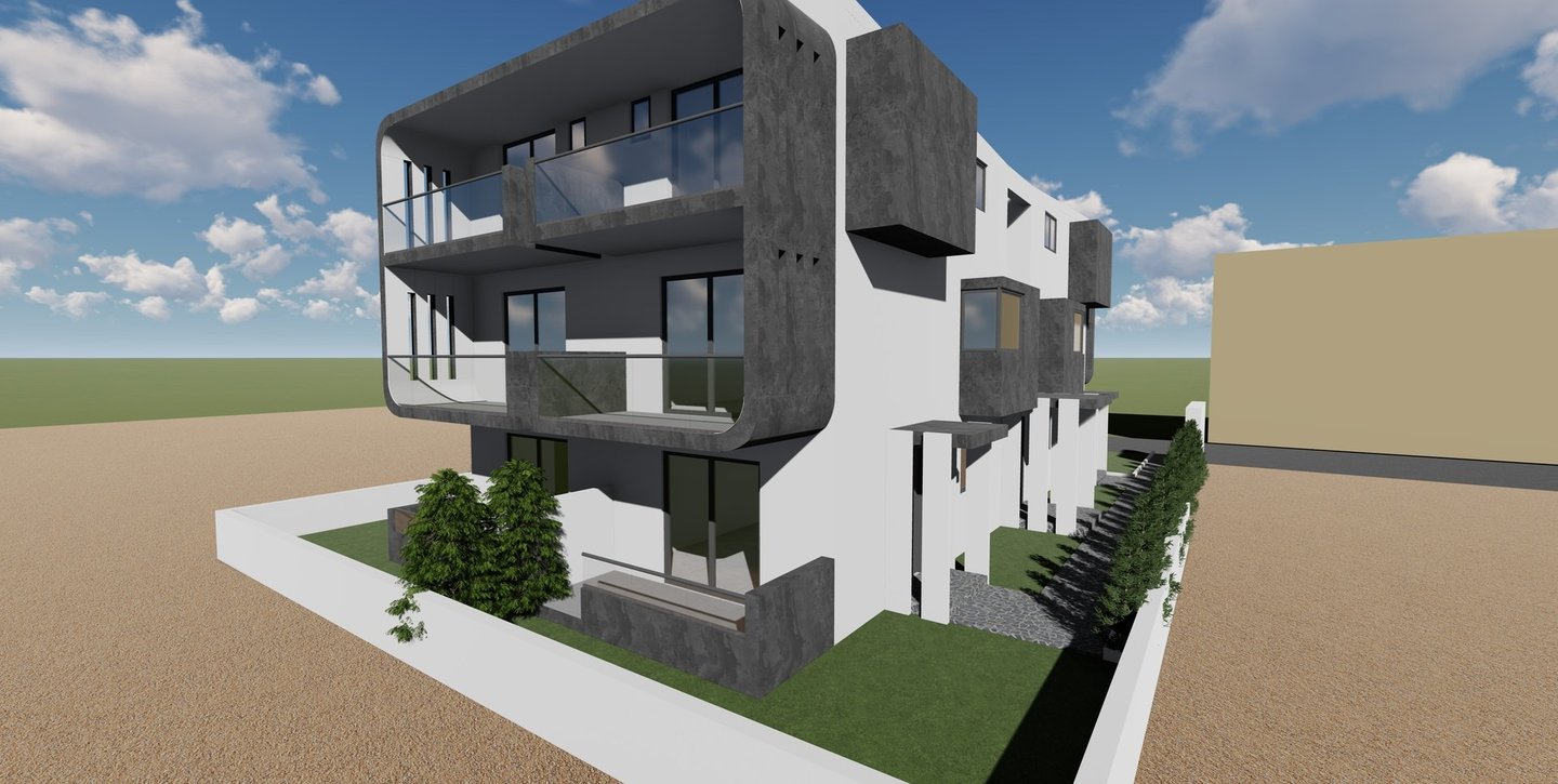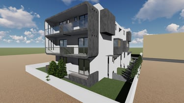 Για την εξυπηρέτηση των επιχειρηματικών αναγκών της οικογένειας, αποφασίστηκε να αναπτυχθεί μια διώροφη οικοδομή η οποία θα περιλαμβάνει στο επίπεδο του ισογείου τέσσερα διαμερίσματα και στον πρώτο όροφο τέσσερα διαμερίσματα με σοφίτες και πατάρια.