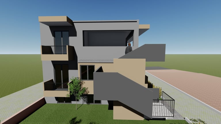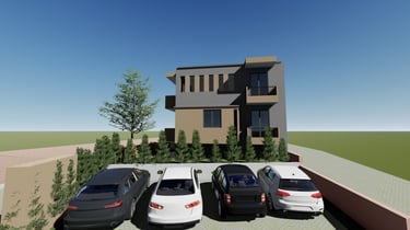 Για την εξυπηρέτηση των στεγαστικών αναγκών της οικογένειας αποφασίστηκε να αναπτυχθεί μια διώροφη οικοδομή η οποία πέραν από την προβλεπόμενη κατοικία που θα περιλαμβάνει στον πρώτο όροφο, θα διαθέτει δυο ισόγεια διαμερίσματα για την μελλοντική αξιοποίηση τους και δυο υπόγειους αποθηκευτικούς χώρους για την αποθήκευση των αναγκών της οικοδομής.
