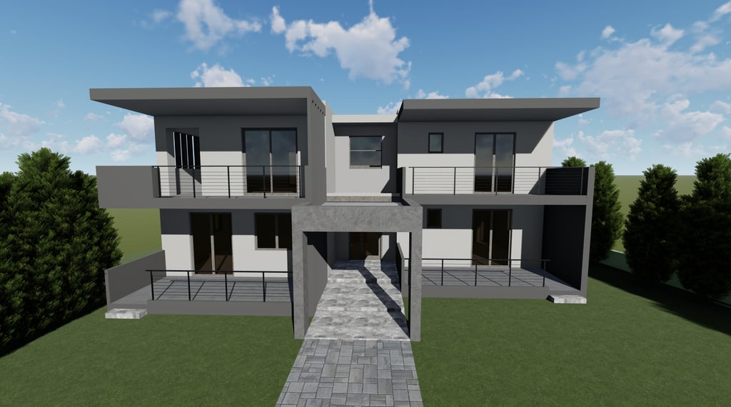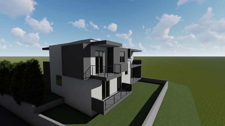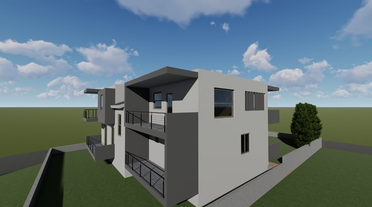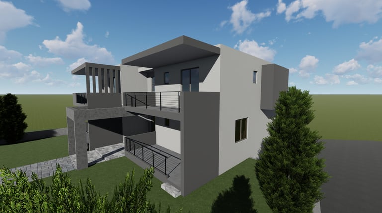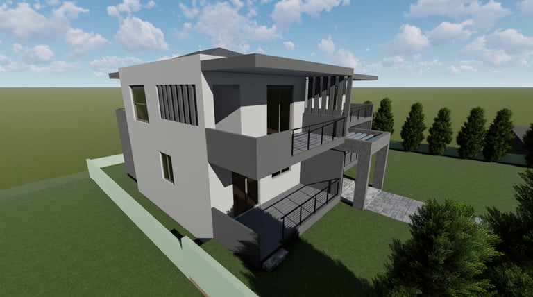 Το παρόν αφορά στην ανέγερση διώροφης οικοδομής κατοικιών σε οικόπεδο, το οποίο βρίσκεται εντός του οικισμού της Κασσανδρείας Χαλκιδικής. Για την εξυπηρέτηση των στεγαστικών αναγκών της οικογένειας, αποφασίστηκε να αναπτυχθεί εντός του γηπέδου μια διώροφη οικοδομή η οποία περιλαμβάνει πέρα από την προβλεπόμενη κατοικία στον πρώτο όροφο θα διαθέτει και δύο ισόγειες κατοικίες για την μελλοντική αξιοποίηση τους για τις ανάγκες μιας τετραμελούς οικογένειας σε ημιαστικό περιβάλλον.