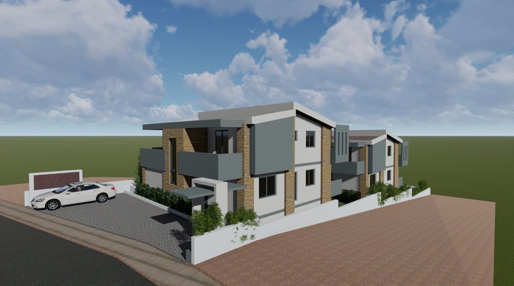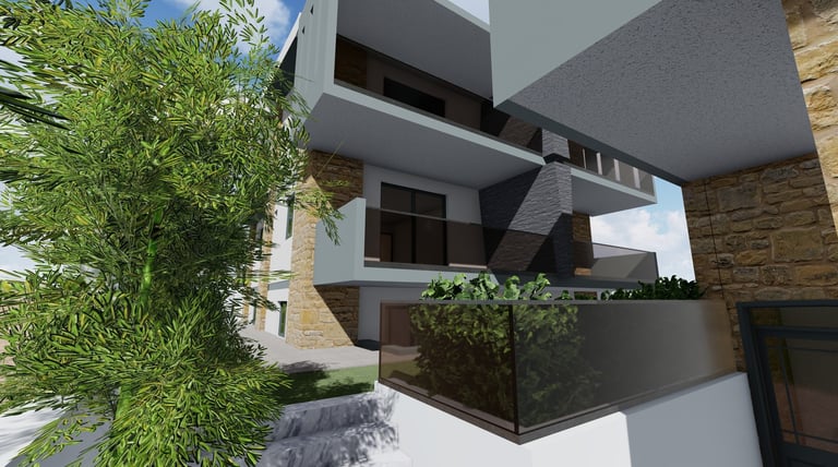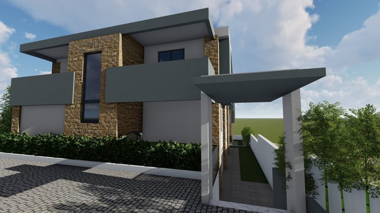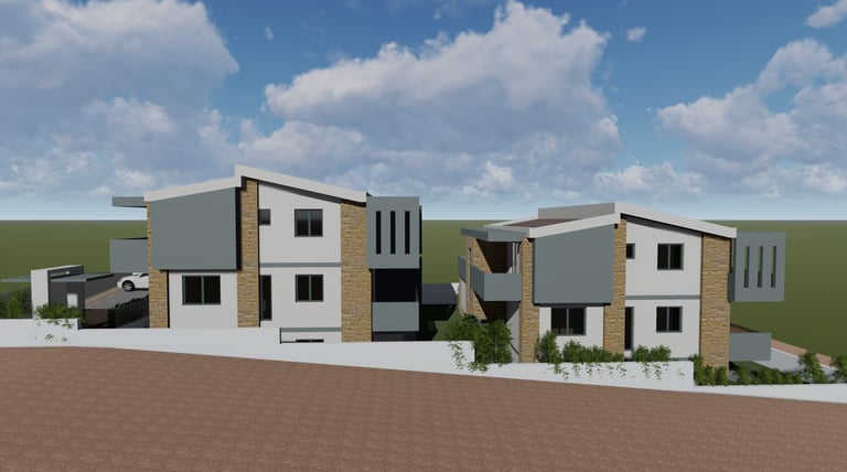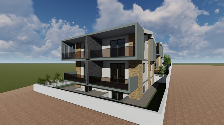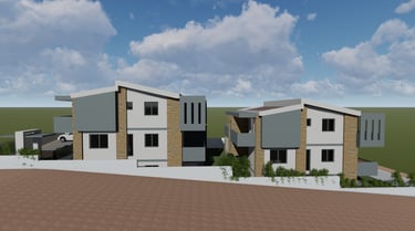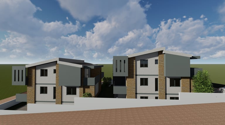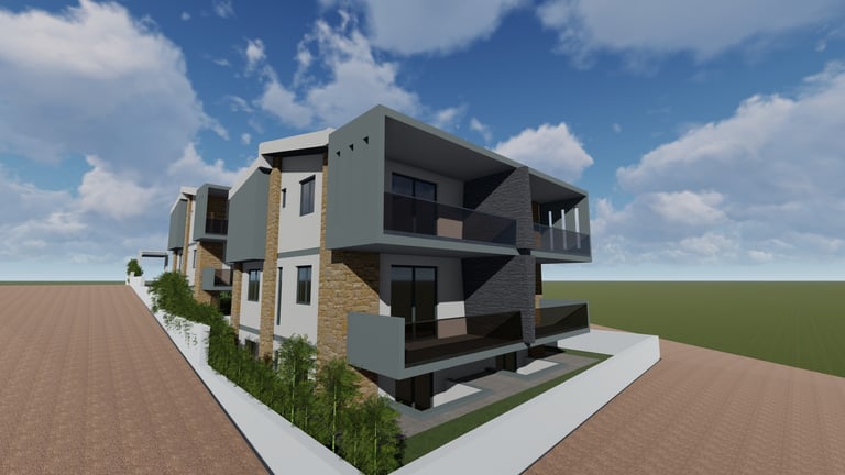 Αφορά στην ανέγερση δύο διώροφων οικοδομής κατοικιών με υπόγειο βοηθητικό χώρο σε οικόπεδο το οποίο βρίσκεται εντός του οικισμού της Κρυοπηγής Χαλκιδικής. Για την εξυπηρέτηση των επιχειρηματικών αναγκών της οικογένειας, αποφασίστηκε να αναπτύξει μια διώροφη οικοδομή η οποία θα περιλαμβάνει στα επίπεδα ισογείου τέσσερις κατοικίες με υπόγειο βοηθητικό χώρο και στους πρώτους ορόφους τέσσερις κατοικίες.